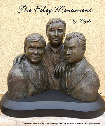 The Foley Monument was commissioned by Scott Mason for Alpha Property Management, Inc's. President Ned Foley. The sculpture by Nijel BPG features Alpha Property Management founder Dan Foley (center), former Alpha President Dean Foley (right) and current President (Ned Foley (left). The monument was unveiled Tuesday, July 10, 2007 at Alpha Property headquarters in Los Angeles.