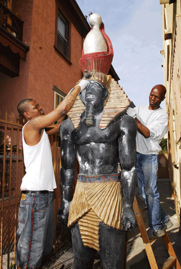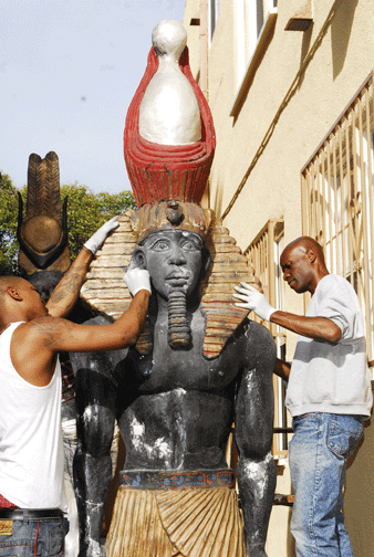 Afrikan Spiritual Science/ Dear Mr. Binns, On behalf of the KRST Unity Center of Afrikan Spiritual Science, Say Yes! To Life, other auxiliaries myself, and the surrounding communities here on Western Ave., it gives me great pleasure to thank and congratulate you on a job well done. The meticulous work that you and your assistant William Coney did over the past several months has restored the 12 foot colossal monuments of Queen TIYE and Ramses II to their former glory as originally envisioned and created by the great artist Charles Dickson. They are a blessing to our community creating numerous stop-ins from people who see themselves, as we hoped they would, depicted in Afrikan splendor. We thank you for your gift to us of your immense talent as an artist and as much to your spirit that allowed you to capture the essence of the vision of transforming this whole community. We wish you ongoing success in your endeavors and look forward to continued excellence from The House of Nijart. Very Highest Regards, Rev. Dr. Meri Ka Ra |